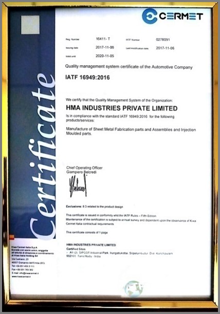 HMAI is an established supplier of automotive ancillary parts with over 20 years of experience in supplying Sheet metal parts, welded sub assemblies, Injection molded parts & Machined parts.